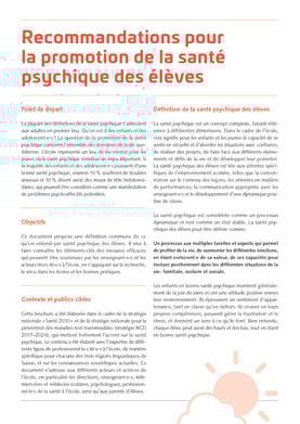 Recommandations pour la promotion de la santé psychique des élèves